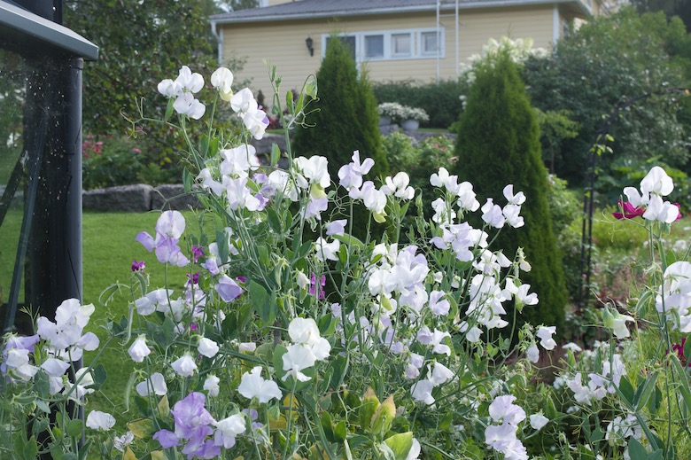 Rinneangervoja istutuksen etualalla ja pergolan oikealla puolella kivien vieressä. Yritän kylvää nurmikonsiemenet tänään, illaksi on luvattu sadetta.